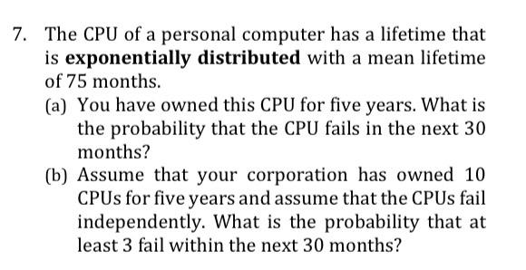 Solved 7 The Cpu Of A Personal Computer Has A Lifetime That Chegg Com
